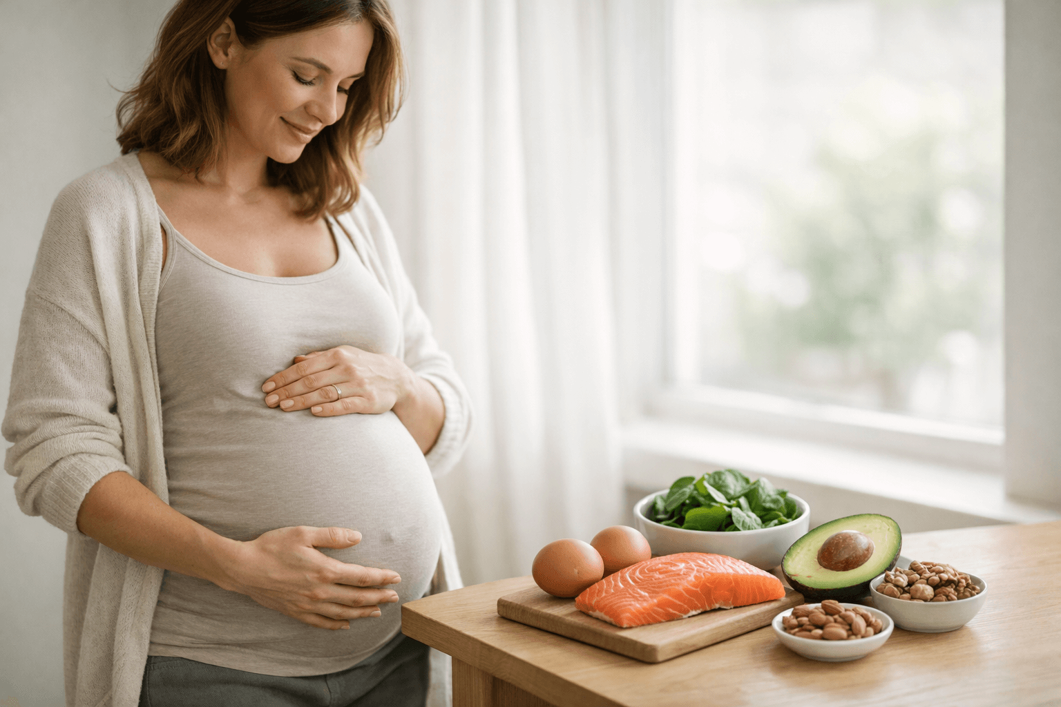 Базовими вважаються фолат (B9), залізо за показниками феритину, вітамін D, йод за рекомендацією лікаря та DHA Омега-3. Мультивітамін покриває профілактику, але не лікує дефіцити.